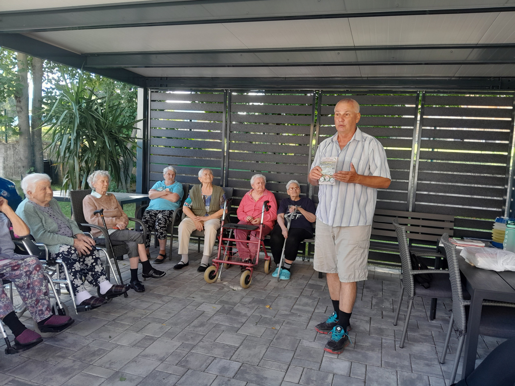 Dňa 22.07.2025 sa konala mimoriadne zaujímavá a obohacujúca beseda, ktorá preniesla prijímateľov do minulosti obce Sučany. Besedu si pre našich prijímateľov pripravil pán Miroslav Šveda z Obecnej knižnice Sučany, ktorý s nadšením a odbornosťou predstavil históriu Sučian, s úctou a rešpektom pripomenul významné osobnosti, ktoré zanechali v obci svoju nezmazateľnú stopu. Hovoril o umelcoch, vedcoch, pedagógoch a ďalších významných ľuďoch, ktorí sa v Sučanoch narodili, žili alebo pôsobili. Beseda sa uskutočnila v príjemnom prostredí exteriéru zariadenia, čo dodalo celému podujatiu uvoľnenú a priateľskú atmosféru. Pán Šveda začal rozprávanie o dávnej minulosti Sučian, od ich prvých zmienok až po kľúčové historické míľniky. Prijímatelia sa dozvedeli o vývoji obce, jej hospodárskych a spoločenských premenách a o tom, ako sa formovala do podoby, ktorú poznáme dnes. Na záver mal pán Šveda pripravený vedomostný kvíz pre prijímateľov, do ktorého sa s nadšením zapájali . Kvíz bol zábavný a poučný. Kvíz bol skvelým spôsobom, ako zakončiť podujatie s úsmevom a pocitom dobre stráveného času, plného objavovania a poznania.