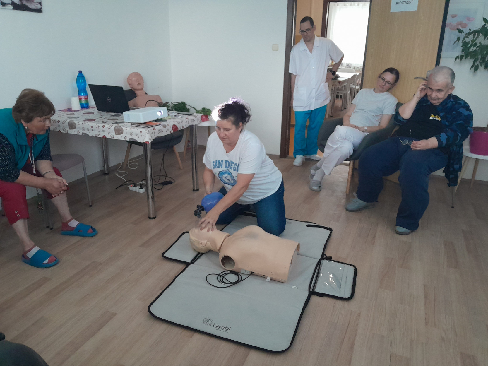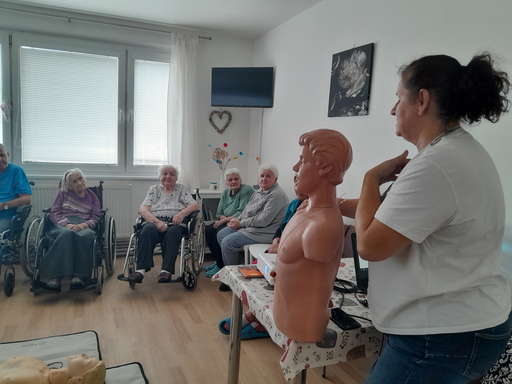 Dňa 28.05.2025 prijala pozvanie do nášho zariadenia SED Sučany prof. MUDr. Jana Plevková, PhD, riaditeľka Simulačného výučbového centra na Jeseniovej lekárskej fakulte UK v Martine. Našim prijímateľom prišla porozprávať pútavú a mimoriadne dôležitú prednášku na tému Prvej pomoci pri dusení a kardiopulmonálnej resuscitácii(KPR). Prostredníctvom dataprojektoru nám urobila prezentáciu. Poskytla nám cennú praktickú ukážku prostredníctvom dvoch figurín: figuríny určenej na nácvik riešenia stavu dusenia a figuríny na KPR resuscitáciu. Názorne a zrozumiteľne nám ukázala ako s nimi správne pracovať. Jej odborné znalosti a praktické rady nám všetkým ukázali, ako môžeme byť pripravení konať v kritických situáciách a potenciálne zachrániť život. Veríme, že vedomosti, ktoré sme získali, sú kľúčové pre každého z nás. Ďakujeme pani profesorke za zdieľanie cenných informácií, ktoré môžu v rozhodujúcom momente zachrániť život.