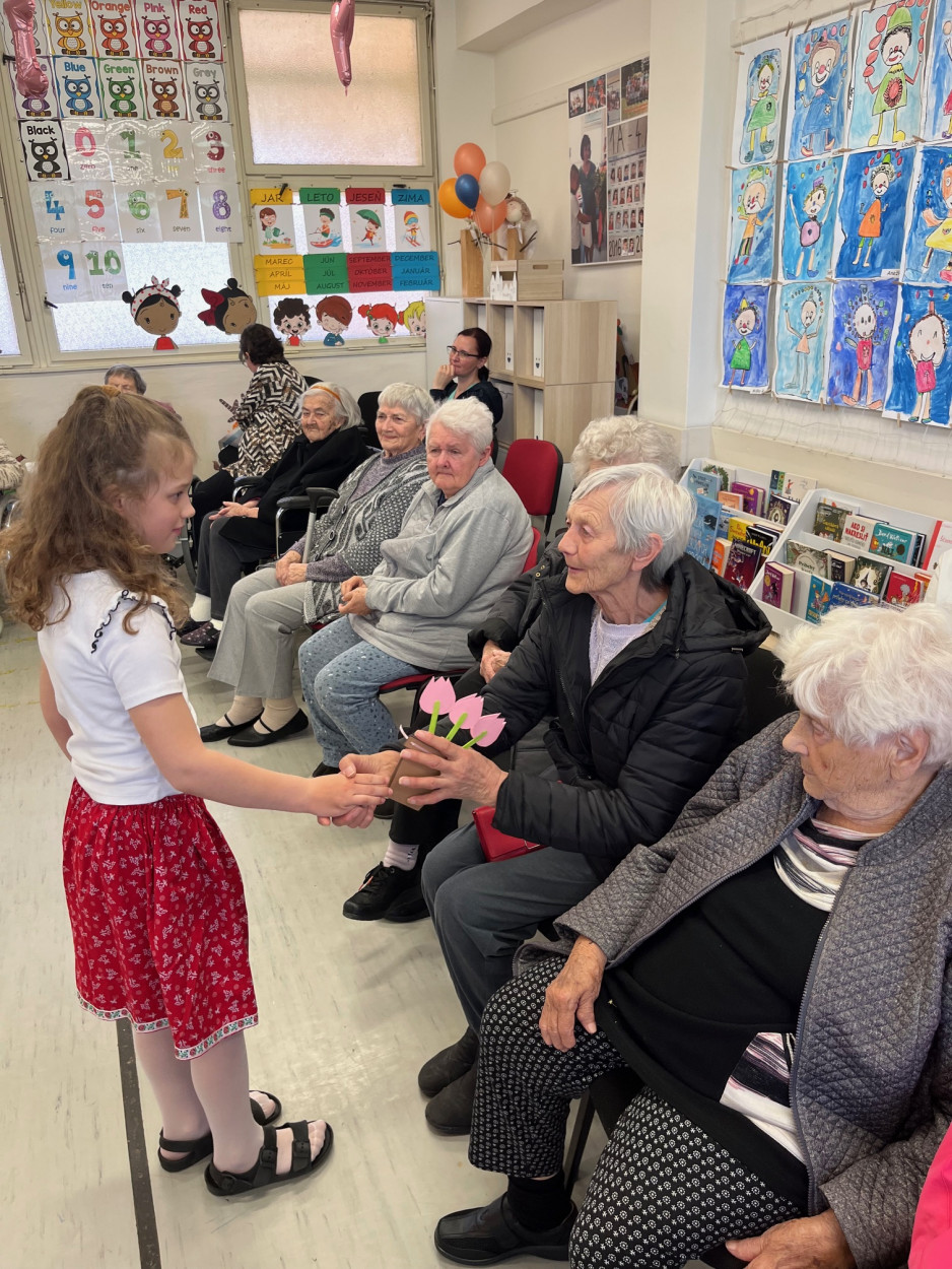 Dňa 09.05.2025 pri príležitosti oslavy Dňa matiek boli prijímatelia sociálnej služby SED Sučany pozvaní do Základnej školy Slovenského národného povstania v Sučanoch, kde si pre nich žiaci prvého stupňa pripravili krásny kultúrny program pod vedením pani vychovávateľky Rebeky Ohurniakovej. S pani vychovávateľkou pripravili pásmo zložené z básní, piesní a tanečnej choreografie. Prijímateľkám sociálnej služby sa predstavenie veľmi páčilo a nejednej sa zaleskla aj slzička v oku od dojatia. Na záver programu bola každá obdarená kvietkom od pani Ing. Anežky Budzákovej , ktorá je kultúrnou referentkou na obecnom úrade v Sučanoch a deti obdarovali prijímateľky sociálnej služby tulipánovou papierovou kytičkou, ktorú vlastnoručne vyrobili, ktorá im bude pripomínať tento nezabudnuteľný zážitok.