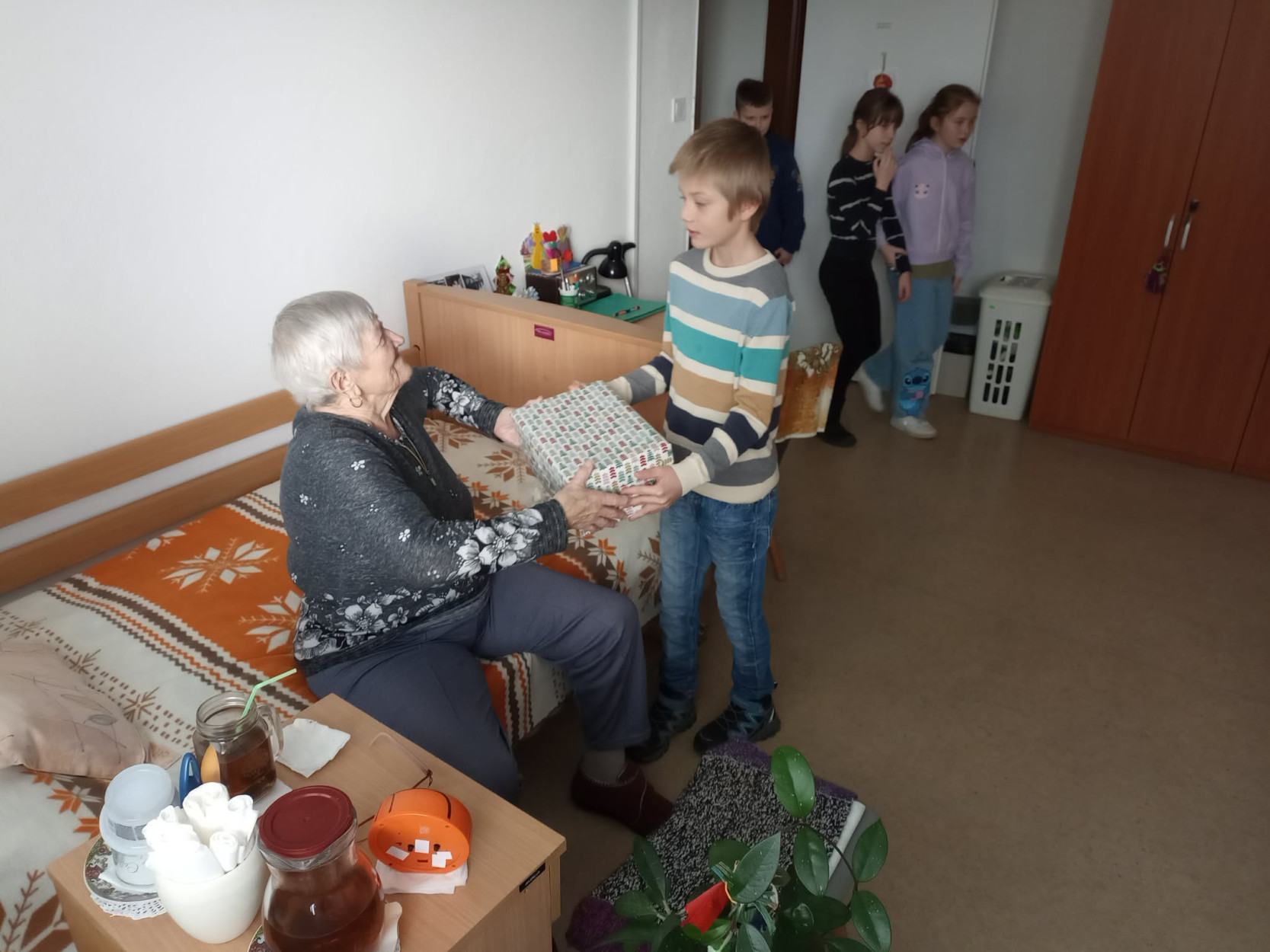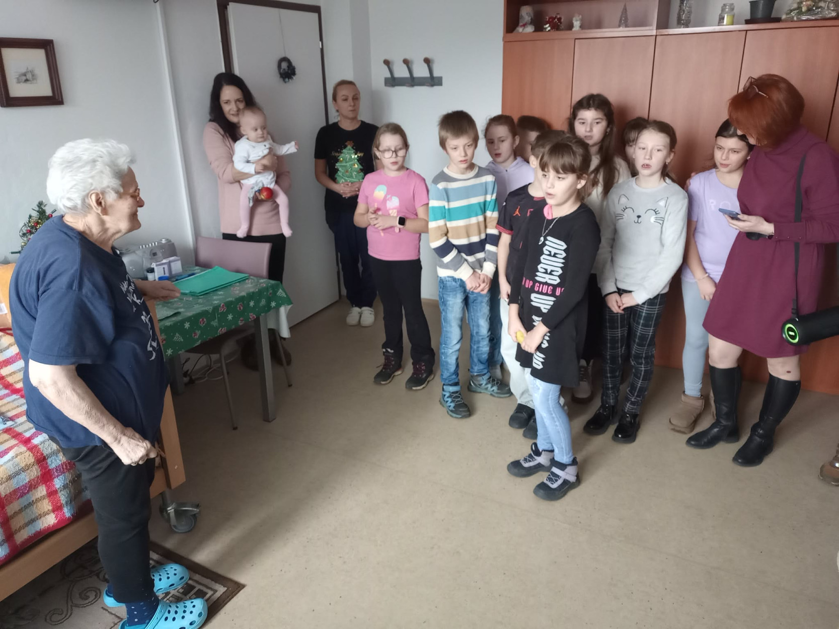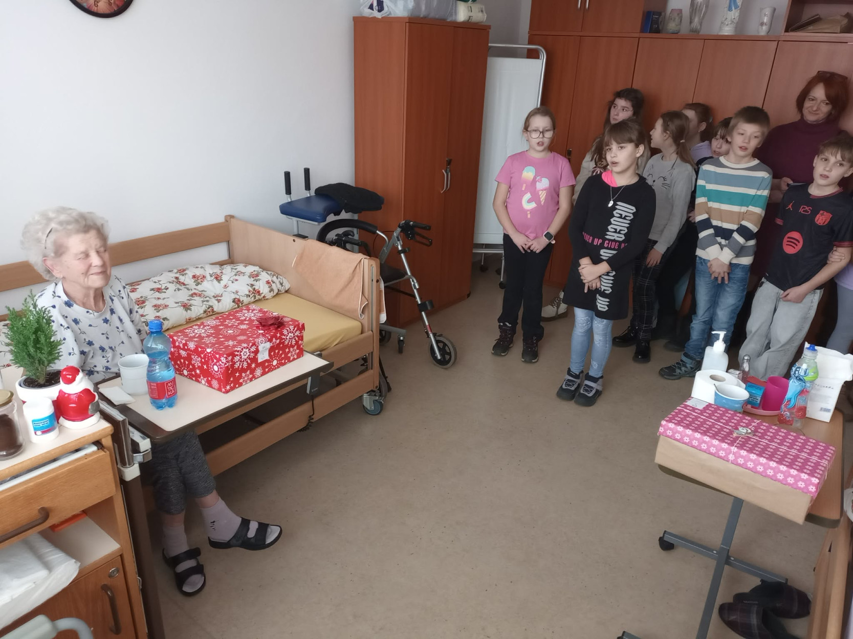 Dňa 17. decembra sme u nás v zariadení prežili výnimočné chvíle. Milé deti zo Základnej školy Slovenského národného povstania Sučany spolu s pani učiteľkou Mgr. Evou Stehlíkovou a zástupkyňou celoslovenského projektu „Koľko lásky sa zmestí do krabice od topánok“ pani Katkou Šípkovou priniesli do našich priestorov obrovskú dávku radosti, tepla a pravú vianočnú atmosféru. Okrem darčekov, ktoré osobne s úsmevom a nadšením rozdávali prijímateľom sociálnej služby po izbách, priniesli aj niečo vzácne – slovo, pieseň a emóciu. Každá krabica bola naplnená malými darčekmi, prekvapeniami a najmä veľkou dávkou lásky. Navštívili každú izbu a osobne potešili našich prijímateľov. Detičky recitovali vianočné verše, spievali koledy a svojim vystúpením naplnili celý priestor radosťou, pokojom a dojatím. Každý úsmev, každá slza dojatia bola dôkazom, že ich prítomnosť mala obrovský zmysel. Takáto udalosť nám pripomenula, že láska a pozornosť sú tým najkrajším darčekom, aký môžeme rozdávať. Zo srdca ďakujeme za tento výnimočný dar- čas, láskavosť a detskú úprimnosť, ktorá rozžiarila predvianočné dni našich prijímateľov. Vďaka deťom, pani učiteľke, pani Katke a jej dcérke sme mohli prežiť chvíle plné radosti, dojatých úsmevov a tepla, ktoré ostane v našich srdciach ešte dlho po Vianociach.