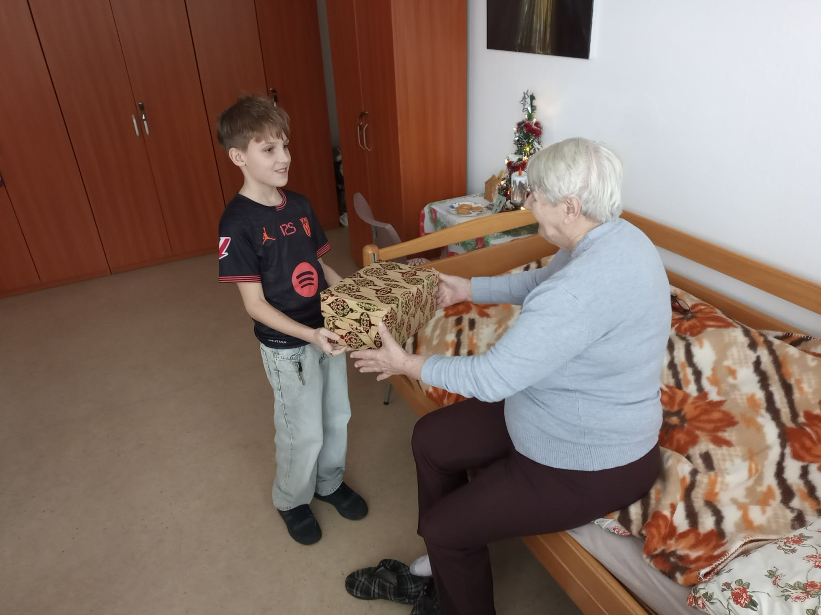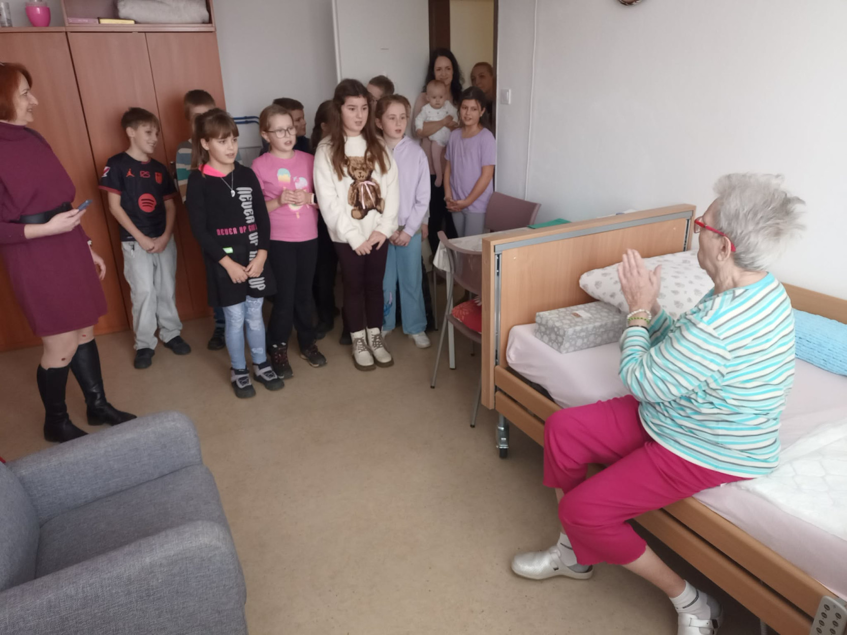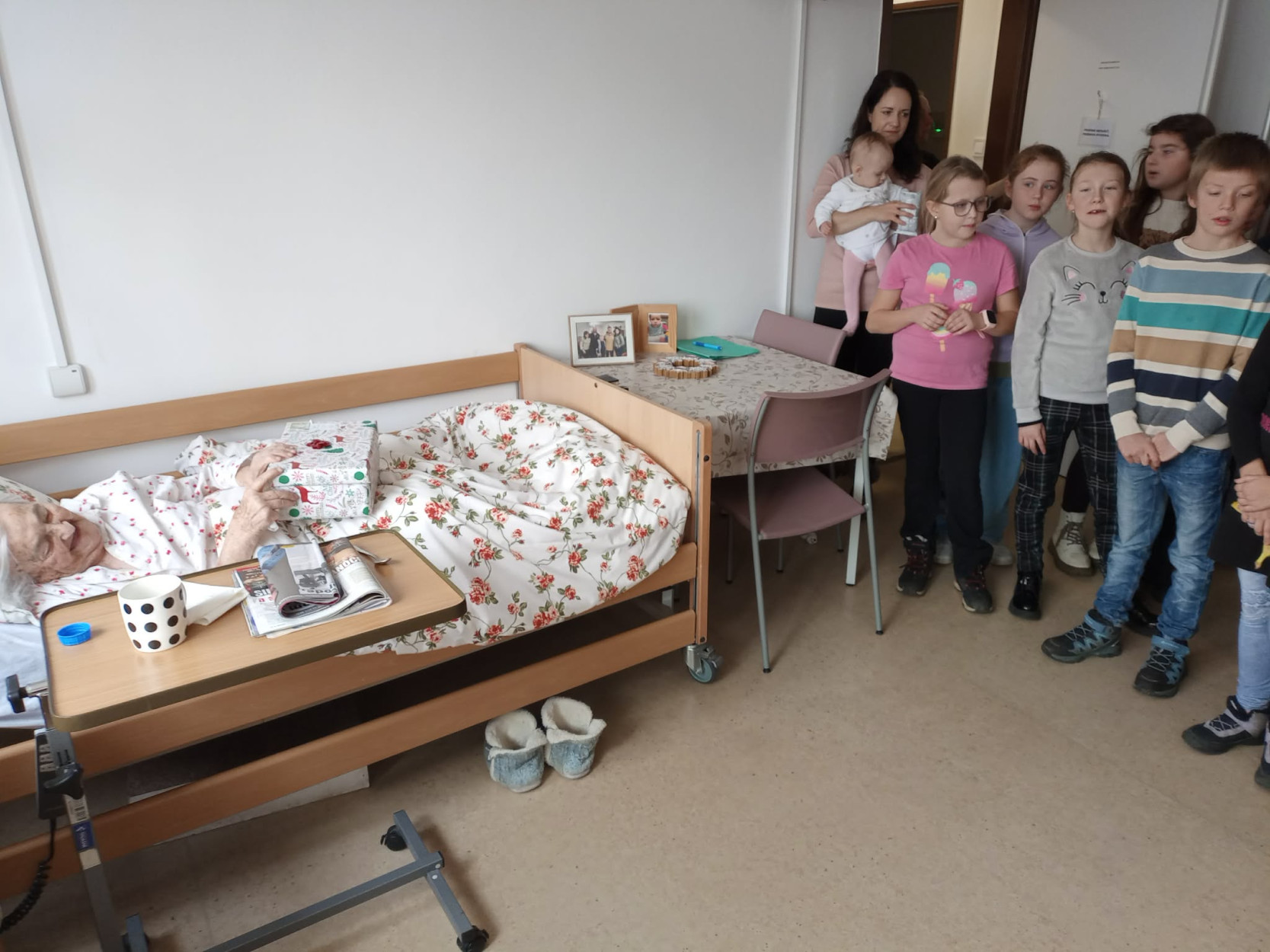 Dňa 17. decembra sme u nás v zariadení prežili výnimočné chvíle. Milé deti zo Základnej školy Slovenského národného povstania Sučany spolu s pani učiteľkou Mgr. Evou Stehlíkovou a zástupkyňou celoslovenského projektu „Koľko lásky sa zmestí do krabice od topánok“ pani Katkou Šípkovou priniesli do našich priestorov obrovskú dávku radosti, tepla a pravú vianočnú atmosféru. Okrem darčekov, ktoré osobne s úsmevom a nadšením rozdávali prijímateľom sociálnej služby po izbách, priniesli aj niečo vzácne – slovo, pieseň a emóciu. Každá krabica bola naplnená malými darčekmi, prekvapeniami a najmä veľkou dávkou lásky. Navštívili každú izbu a osobne potešili našich prijímateľov. Detičky recitovali vianočné verše, spievali koledy a svojim vystúpením naplnili celý priestor radosťou, pokojom a dojatím. Každý úsmev, každá slza dojatia bola dôkazom, že ich prítomnosť mala obrovský zmysel. Takáto udalosť nám pripomenula, že láska a pozornosť sú tým najkrajším darčekom, aký môžeme rozdávať. Zo srdca ďakujeme za tento výnimočný dar- čas, láskavosť a detskú úprimnosť, ktorá rozžiarila predvianočné dni našich prijímateľov. Vďaka deťom, pani učiteľke, pani Katke a jej dcérke sme mohli prežiť chvíle plné radosti, dojatých úsmevov a tepla, ktoré ostane v našich srdciach ešte dlho po Vianociach.