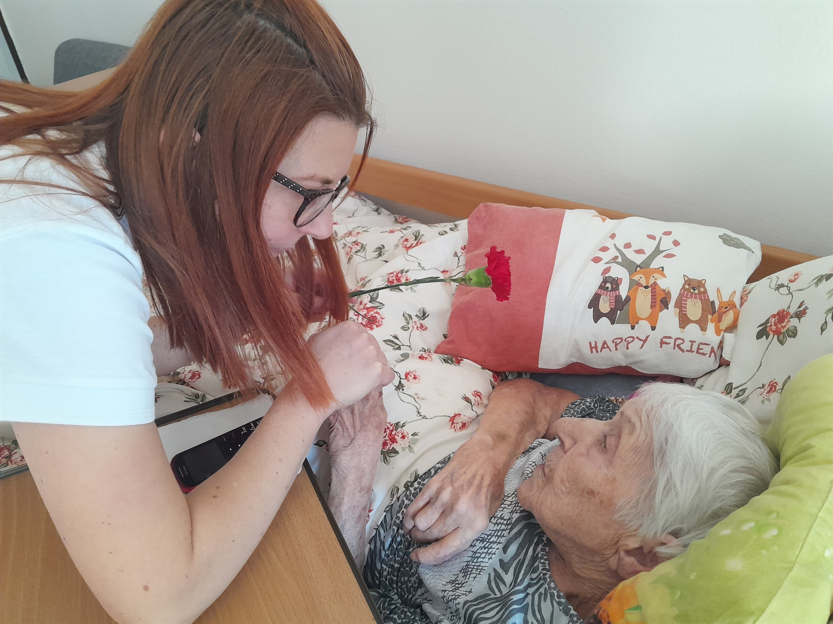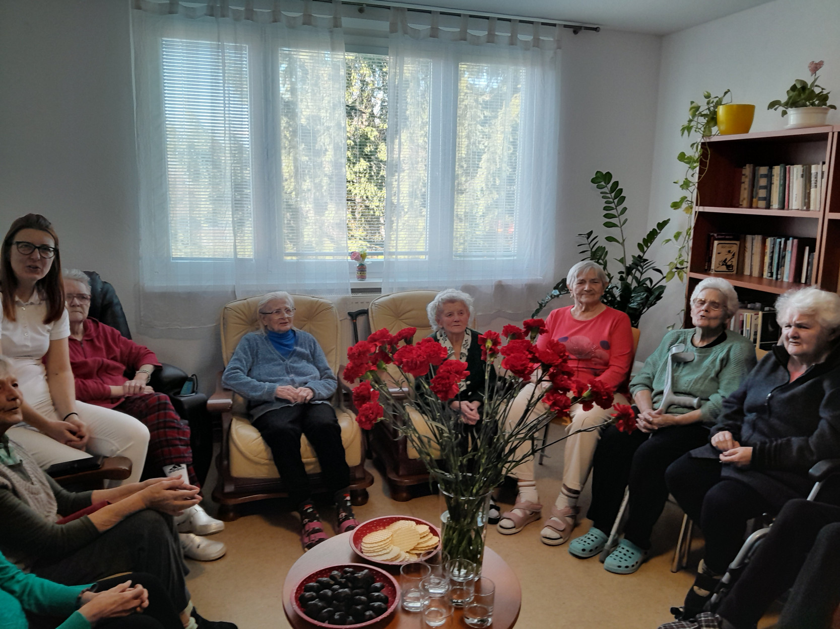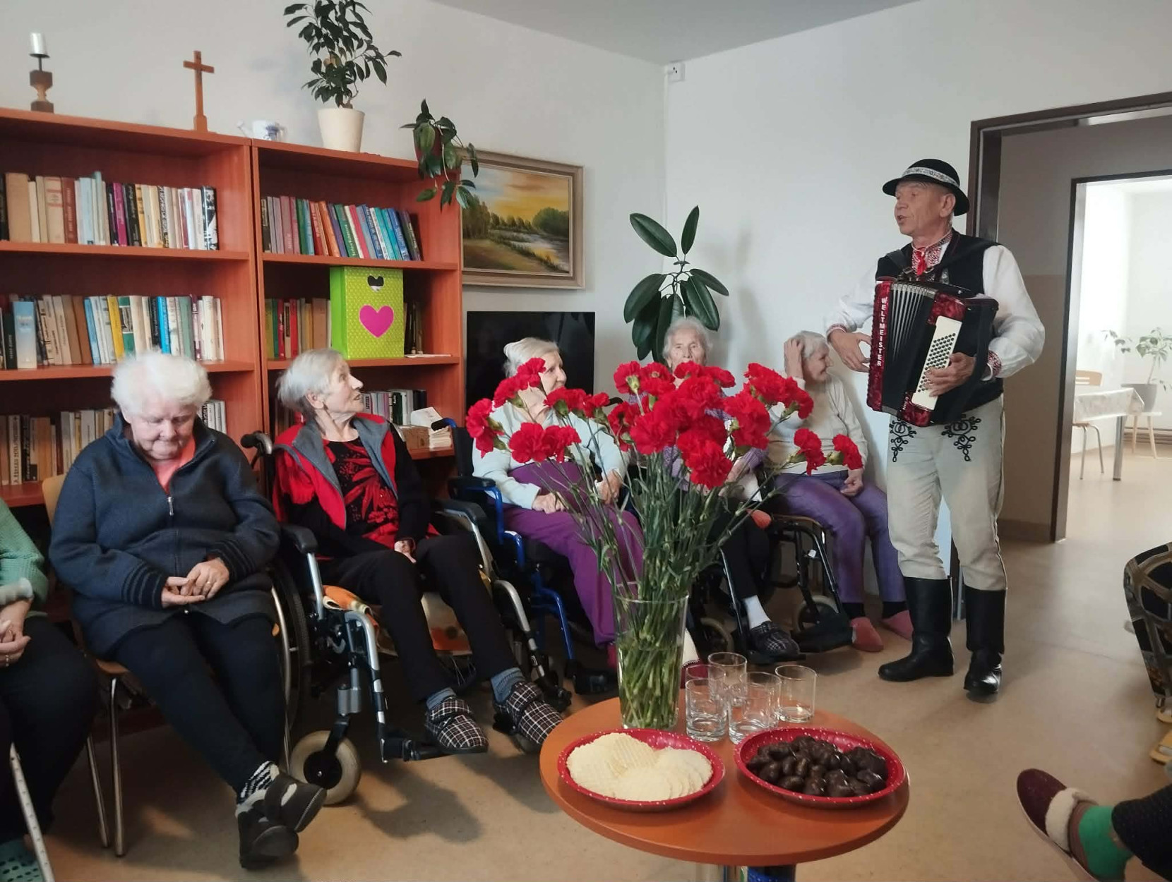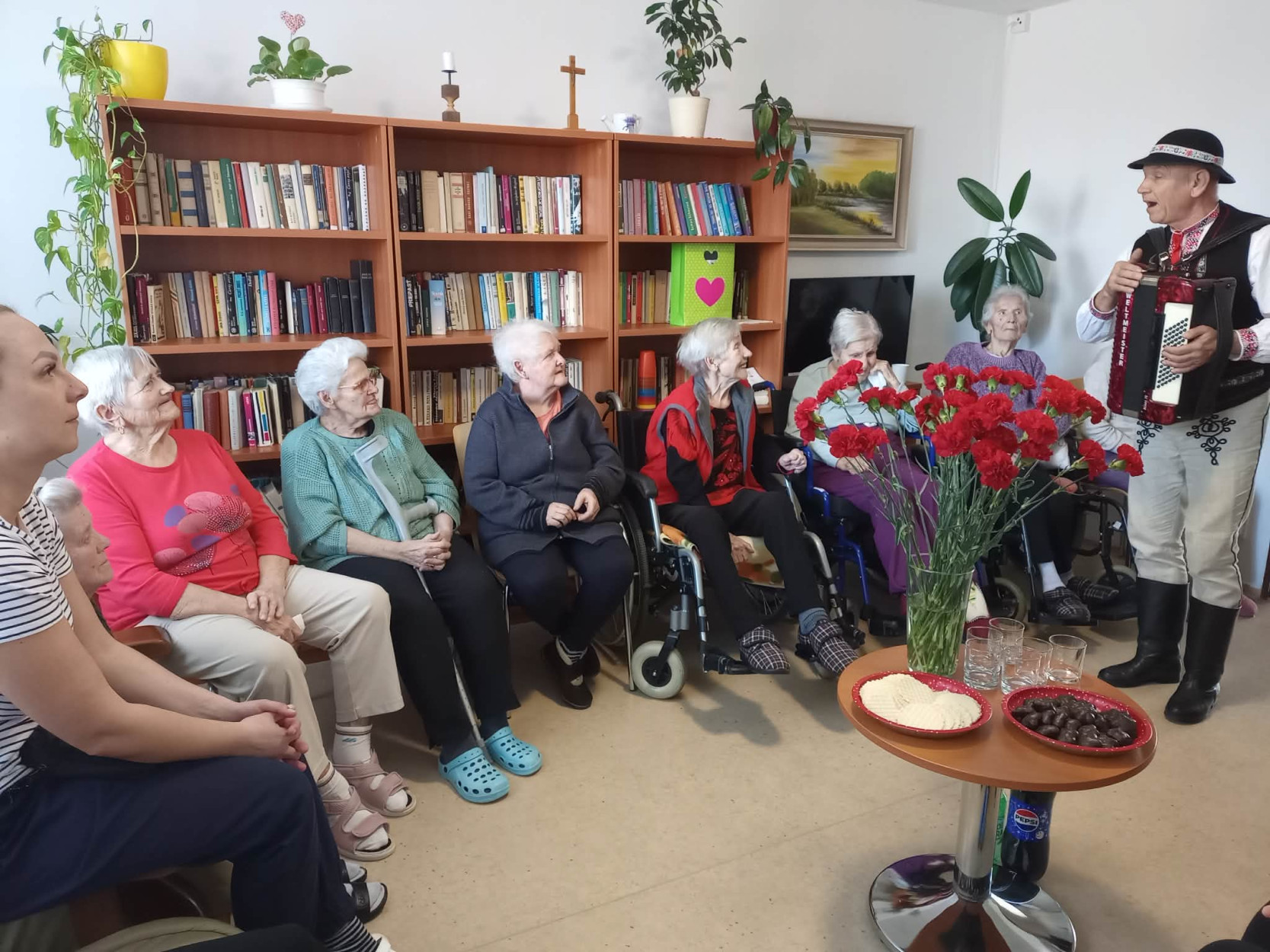 Dňa 9. marca 2026 sme v našom zariadení prežili príjemné a srdečné dopoludnie venované našim prijímateľkám sociálnej služby pri príležitosti Medzinárodného dňa žien. Tento sviatok sme oslávili spoločným posedením, ktoré sa nieslo v duchu radosti, hudby, smiechu a dobrej nálady. Pozvanie medzi nás prijal pán Peter Jendrišák, ktorý nám svojim spevom a hrou na harmonike spríjemnil celé stretnutie. Spoločne sme si zaspievali množstvo krásnych a známych ľudových piesní, ktoré našim prijímateľkám pripomenuli mladé roky a vyčarili úsmev na ich tvárach. Medzi piesňami nás pán Jendrišák rozveselil aj rôznymi veselými príhodami a vtipmi, pri ktorých sa miestnosť naplnila smiechom a príjemnou atmosférou. Na záver tohto krásneho vystúpenia pán Peter venoval každej prijímateľke červený karafiát, ako symbol úcty, vďaky a pozornosti ženám. Po spoločnom obede sme následne navštívili aj prijímateľky na izbách, aby sme červené karafiáty odovzdali aj tým, ktoré sa posedenia nemohli zúčastniť. Aj takýmto spôsobom sme chceli potešiť všetky naše dámy a spríjemniť im tento výnimočný deň. Ďakujeme pánovi Petrovi Jendrišákovi za krásne hudobné vystúpenie, dobrú náladu a čas, ktorý venoval našim prijímateľkám. Veľmi si to vážime a všetkým našim milým prijímateľkám prajeme najmä veľa zdravia, pokoja, radosti a čo najviac krásnych chvíľ prežitých s úsmevom na tvári.