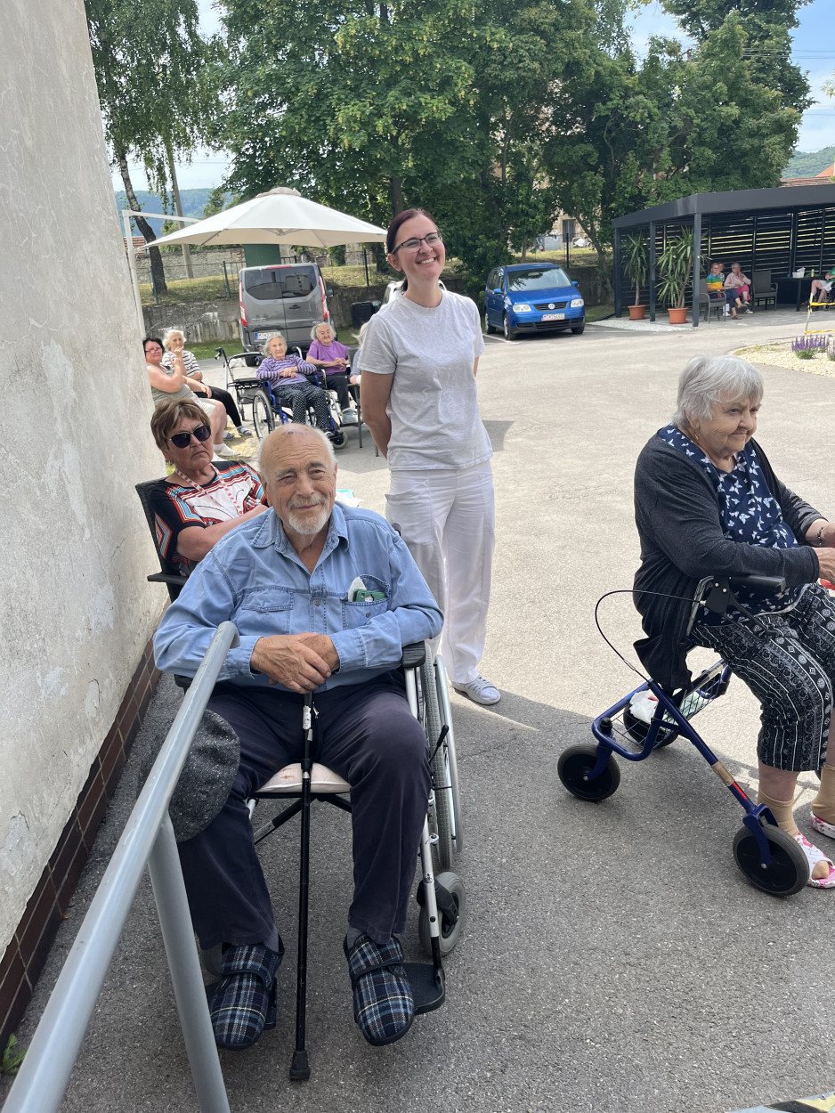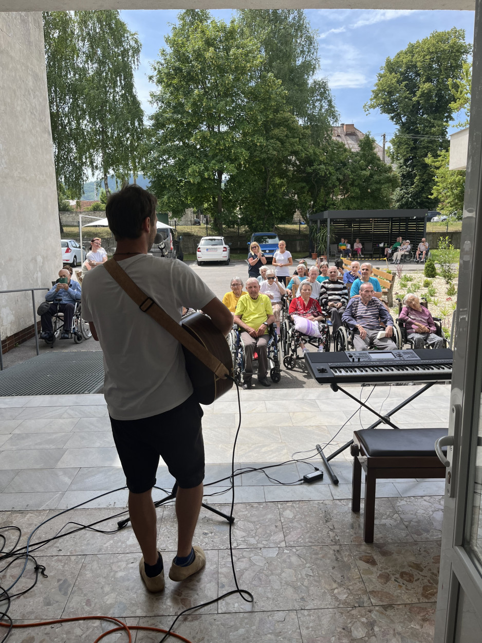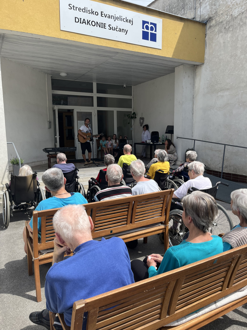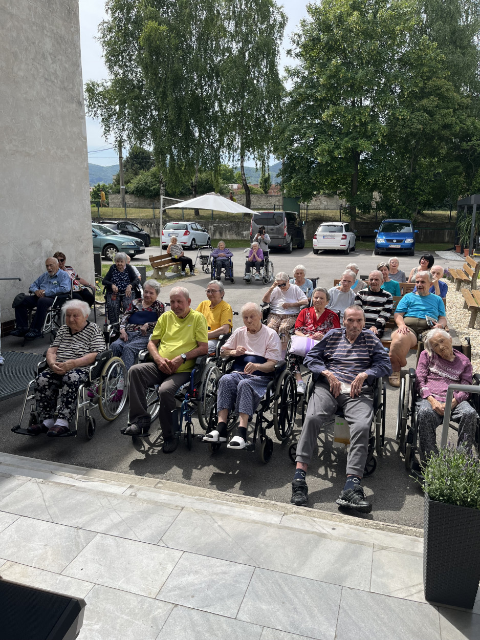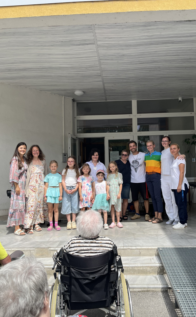 Dňa 23.06.2025 prišli potešiť našich seniorov svojim výnimočným vystúpením talentované deti z “Radostného sveta“ pod vedením Ing. Marice Laščekovej - podporovateľky slobodného prístupu k výchove a vzdelávaniu detí. Je spoluzakladateľkou komunitnej vzdelávacej skupiny Radostný svet. Svojim spevom a nadšením si okamžite získali srdcia seniorov. Talentované dievčatká z OZ Radostný svet si pod vedením pani učiteľky spevu Evy Krajča pripravili krásny hudobný program. Ich spev znel čisto a nežne – niesol v sebe úprimnosť detského sveta a radosť. Atmosféru ešte viac umocnil špeciálny hosť, slovenský spevák a hudobník Juraj Hnilica, ktorý svojim vystúpením prispel k nezabudnuteľnému umeleckému zážitku. Jeho nezameniteľný hlas a obľúbené piesne navodili príjemnú a povznášajúcu atmosféru. Pani Marica Laščeková očarila poslucháčov hrou na flaute. Pripravili si pre nás roztomilé vystúpenie, ktoré nám pohladilo dušu a vyčarilo úsmev na tvári. Ich spev nebol len vystúpením – bol darom. Deti z OZ Radostný svet prišli, lebo túžili potešiť. A my si to úprimne vážime. Priniesli nám svoju bezprostrednosť a radosť z hudby. Spojenie detskej radosti a profesionálneho umenia vytvorilo v našom zariadení skutočne výnimočnú udalosť.