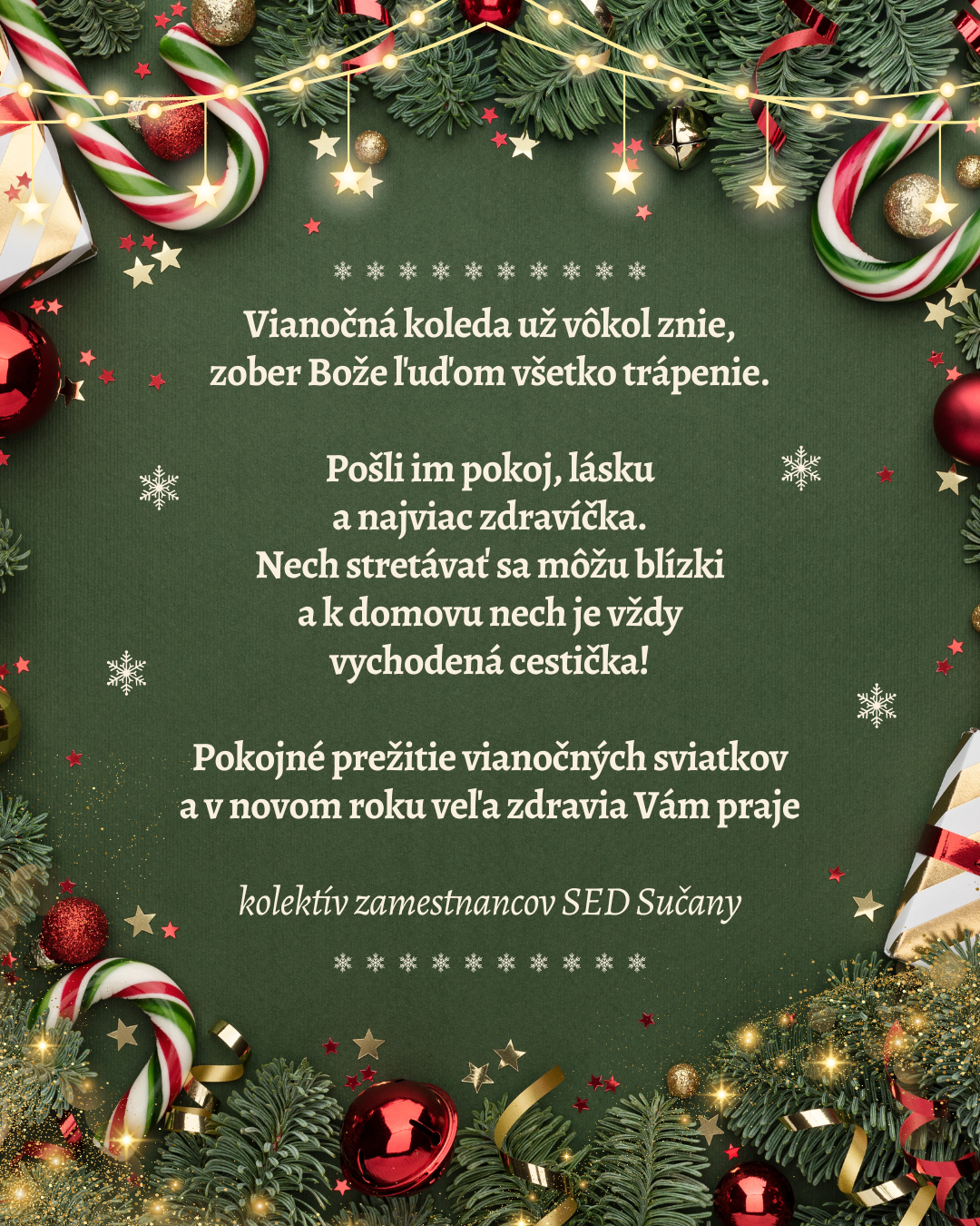 Na základe nariadenia RÚVZ Martin platí v našom zariadení SED Sučany od 20. 02. 2025 zákaz návštev z dôvodu epidemického výskytu infekčných ochorení.Ďakujeme za porozumenie a spoluprácu v tejto náročnej situácii.